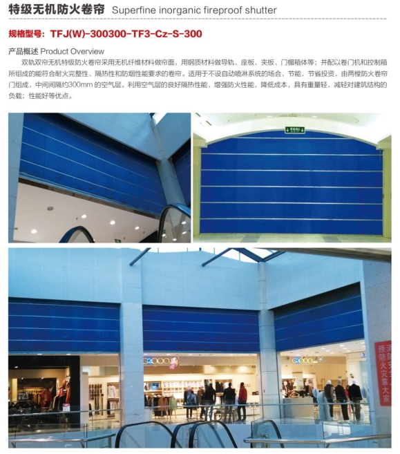 提升式防火卷簾門是我公司根據(jù)現(xiàn)在建筑消防規(guī)范需求,開發(fā)的一種新型機械傳動模式,它的門臉和普通雙軌雙簾防火卷簾的材料相同,對電機組合機械組驚醒了改進,從而達到了合適大跨度的防火分區(qū)。此種卷簾可做弧線轉(zhuǎn)完。適合復(fù)雜的建筑防火分區(qū)。